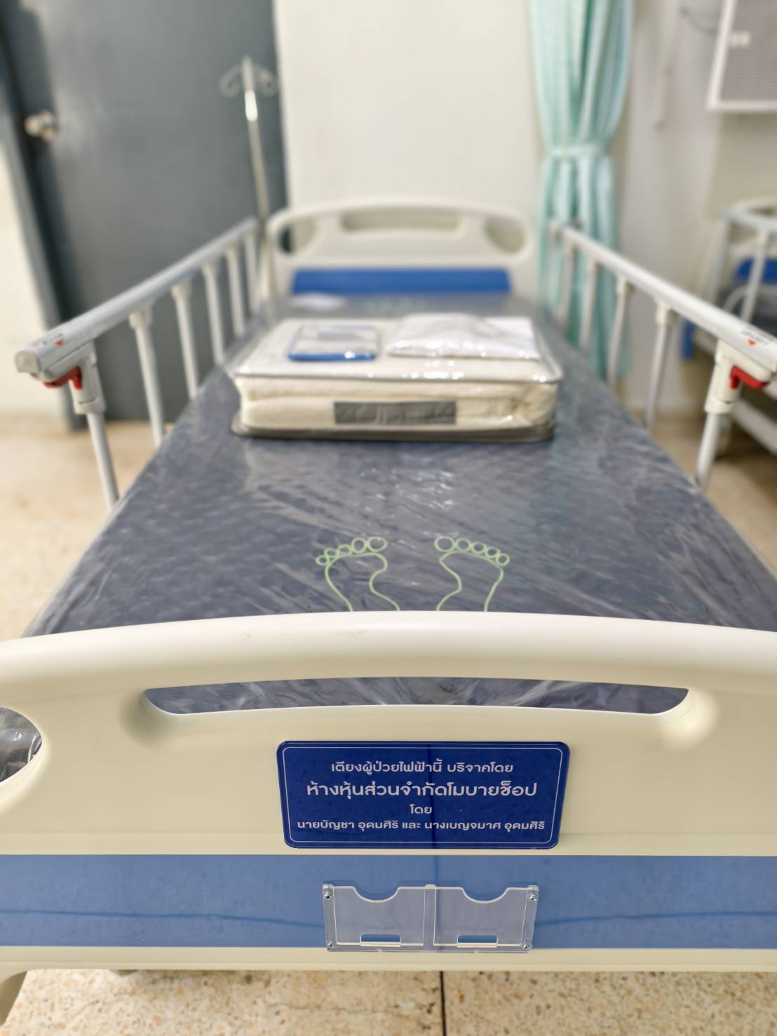 |  | โรงพยาบาลเฉลิมพระเกียรติ ขอขอบพระคุณ ห้างหุ้นส่วนจำกัด โมบายช็อป โดย คุณบัญชา-คุณเบญจมาศ อุดมศิริ ที่ได้บริจาคเตียงไฟฟ้า จำนวน 2 หลัง รวมเป็นเงิน 65,000 บาท ให้โรงพยาบาลเฉลิมพระเกียรติ เพื่อให้บริการผู้ป่วย ขอกุศลทานในการบริจาคครั้งนี้ จงบันดาลให้ผู้บริจาคและครอบครัว ประสบสรรพสิริสวัสดิ พิพัฒนมงคล